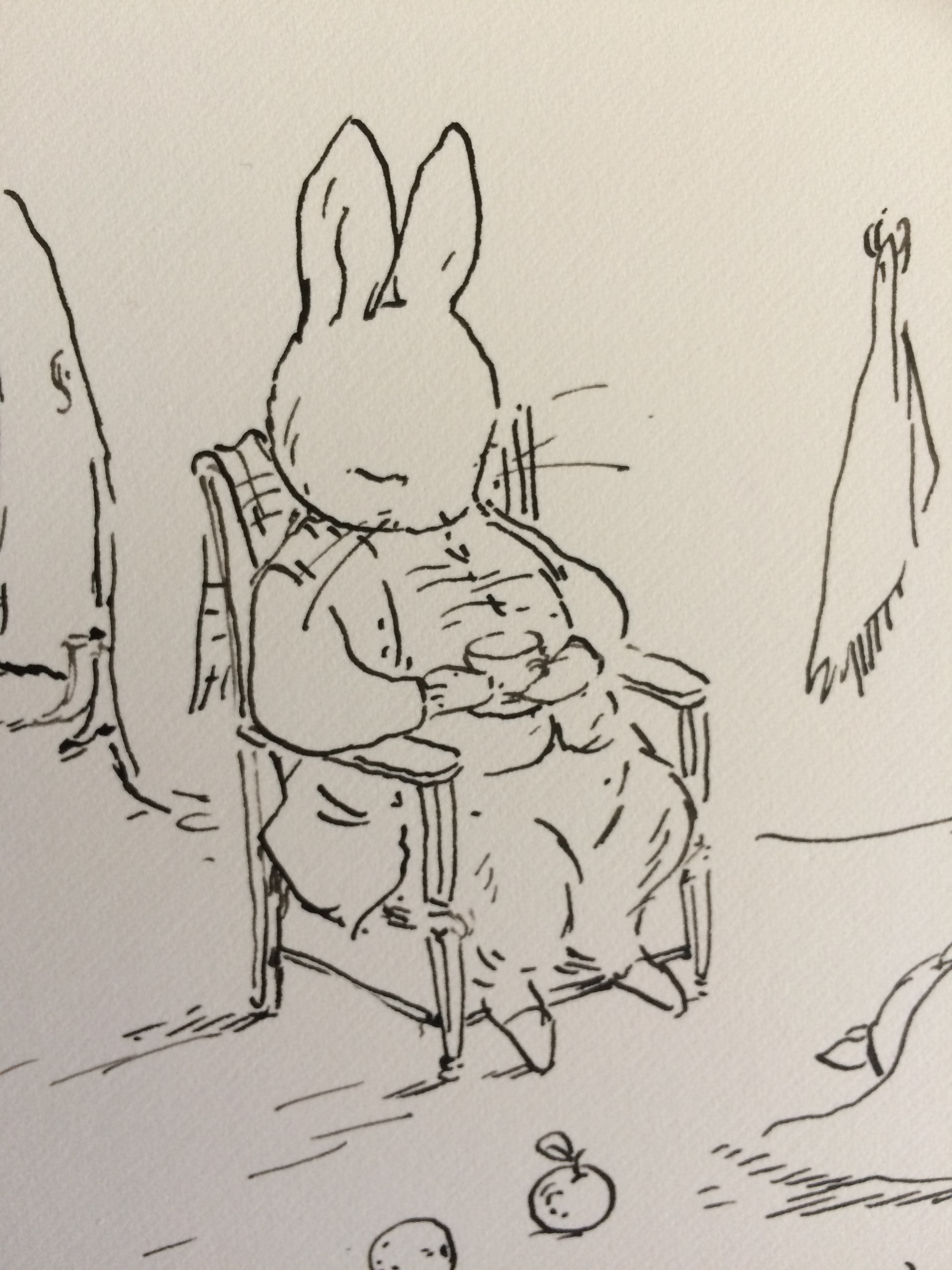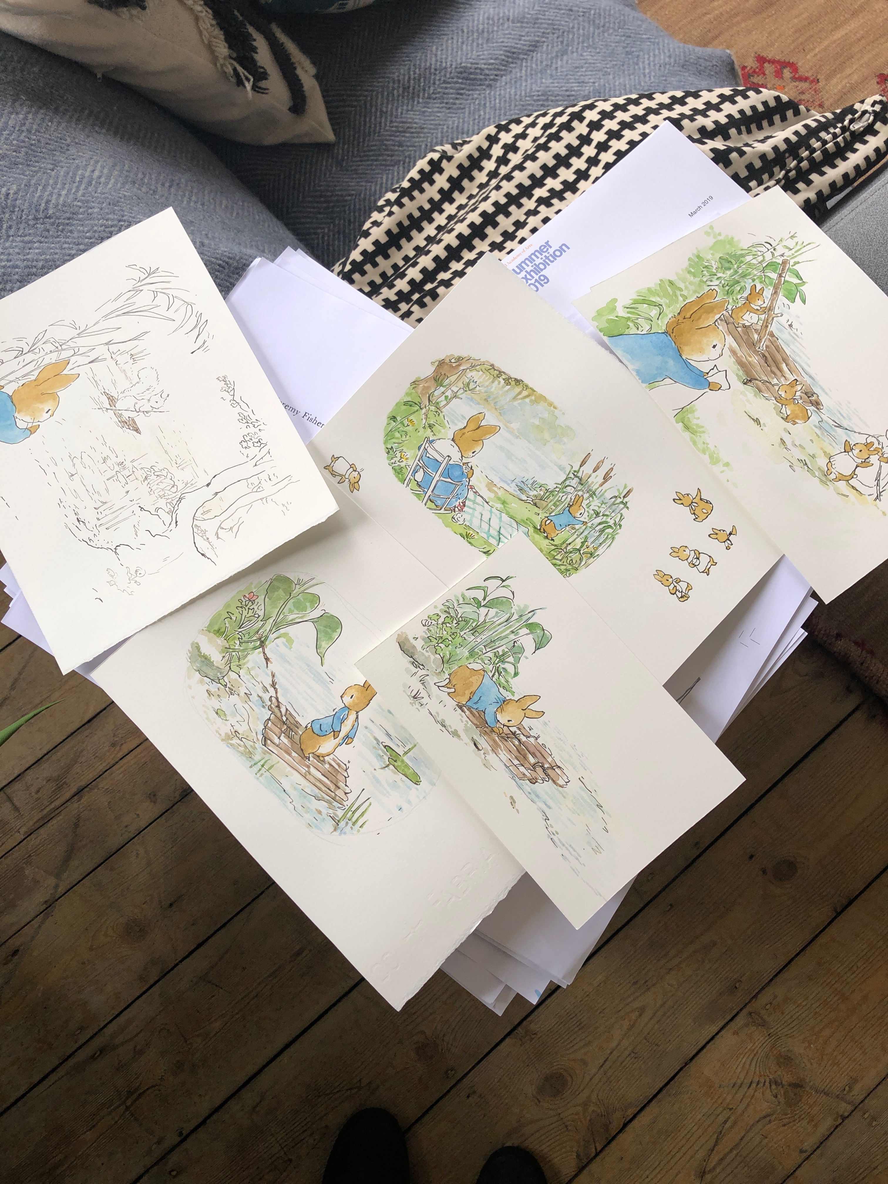 I was first commissioned to illustrate the Further Tales of Peter Rabbit written by Emma Thompson in 2008. Since then I have continued as the illustrator of the new tales and have a close and meaningful relationship with this mischievous rabbit.